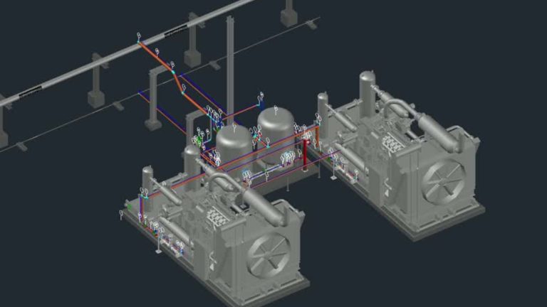 - Diseño 3D para Recuperación de Venteos : Creación de una maqueta 3D para el diseño de un sistema de recuperación de venteos en dos compresores reciprocantes. El sistema permite la captura y aprovechamiento del gas que antes era liberado a la atmósfera, reduciendo significativamente la emisión de metano.